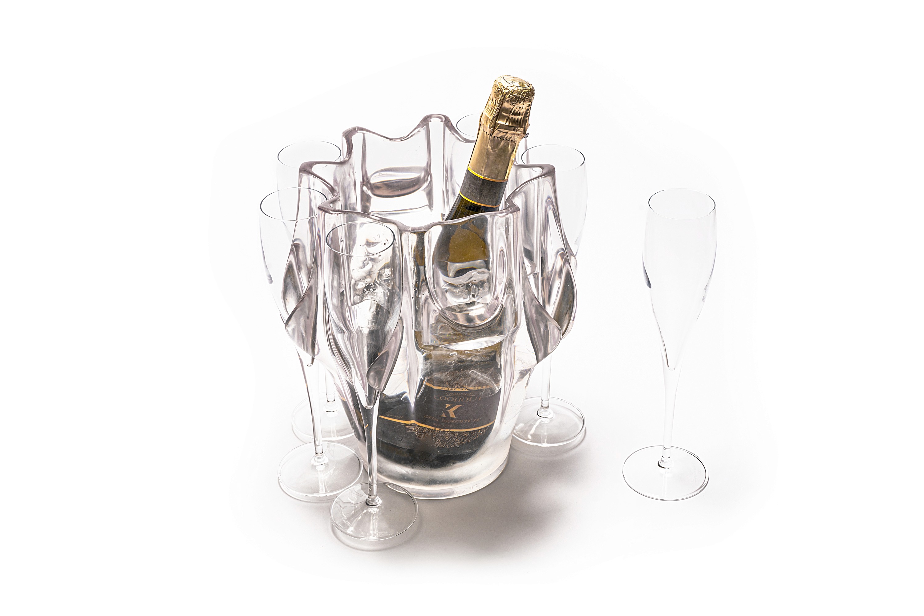 Conveniently carry six glasses and a bottle of champagne with one product.